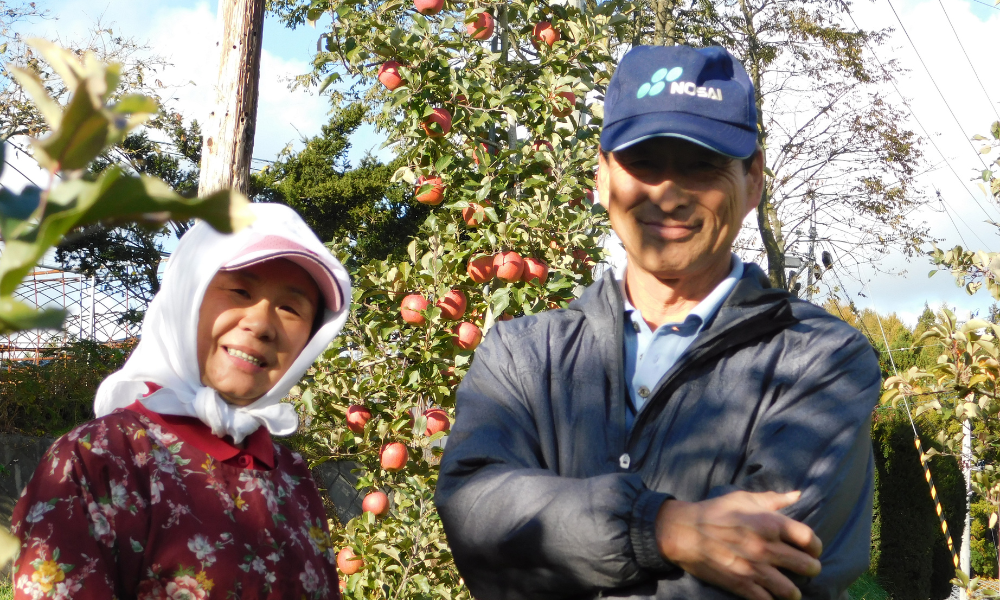 こちらのサンふじりんごを栽培しているのは、りんご農家の「山市さん」と「佐々木さん」。